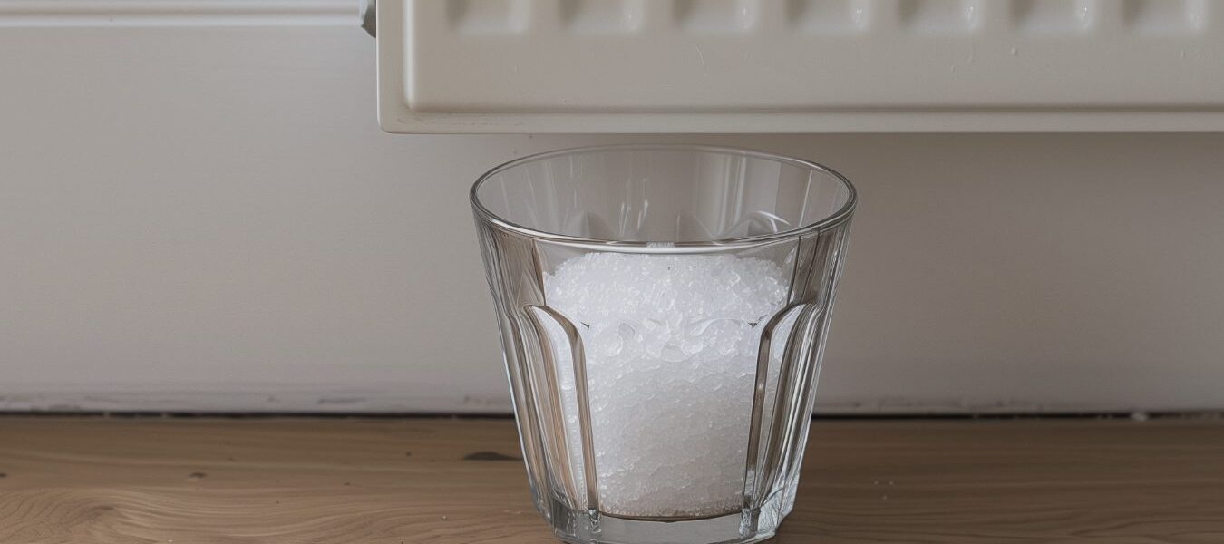 Un bicchiere di sale sotto al termosifone non solo assorbe l’umidità, ma aiuta anche a eliminare cattivi odori.